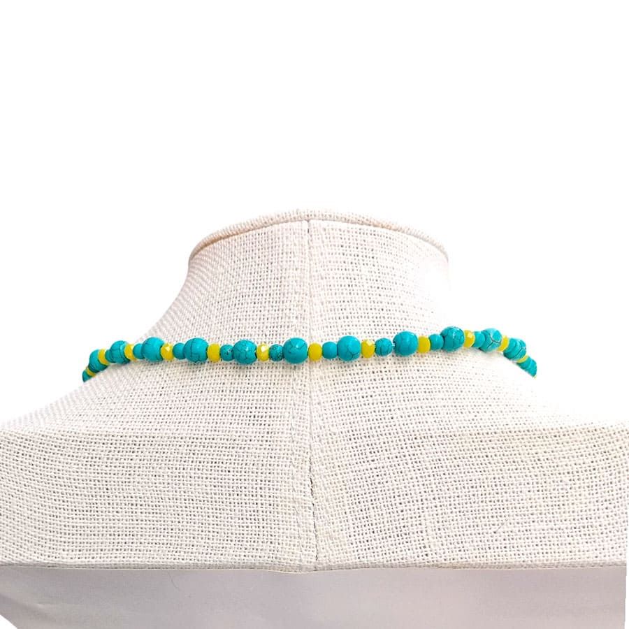 • Cordón de cuentas de turquesas extrusionadas, combinadas con cuentas de cristal amarillo