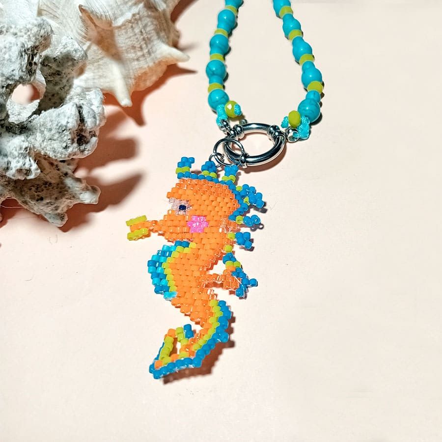 • Colgante de caballito de mar hecho a mano con cuentas de cristal japonés Miyuki®