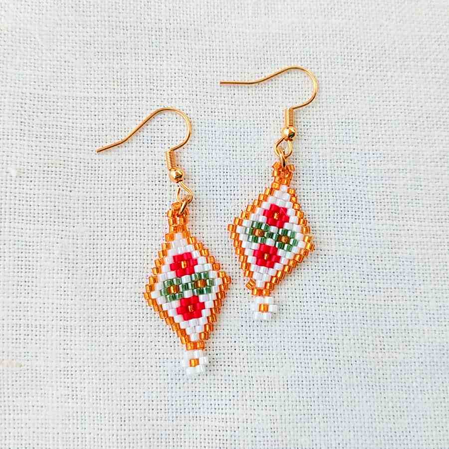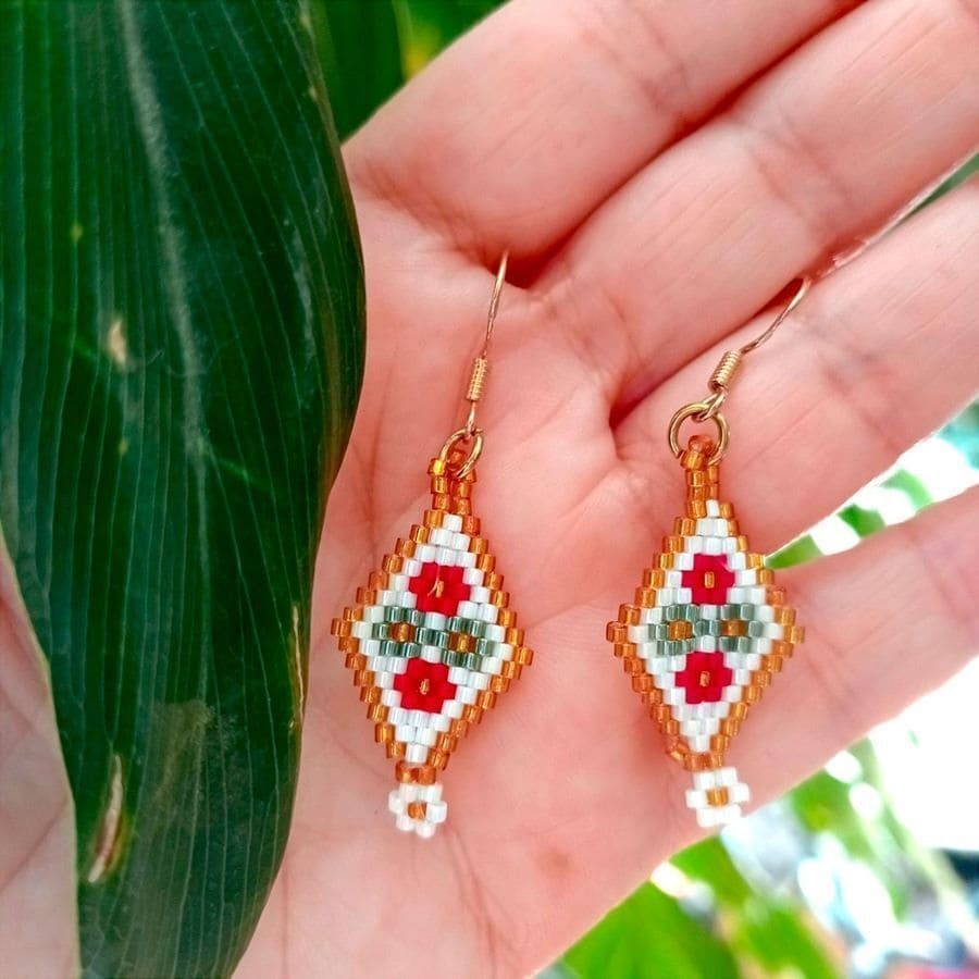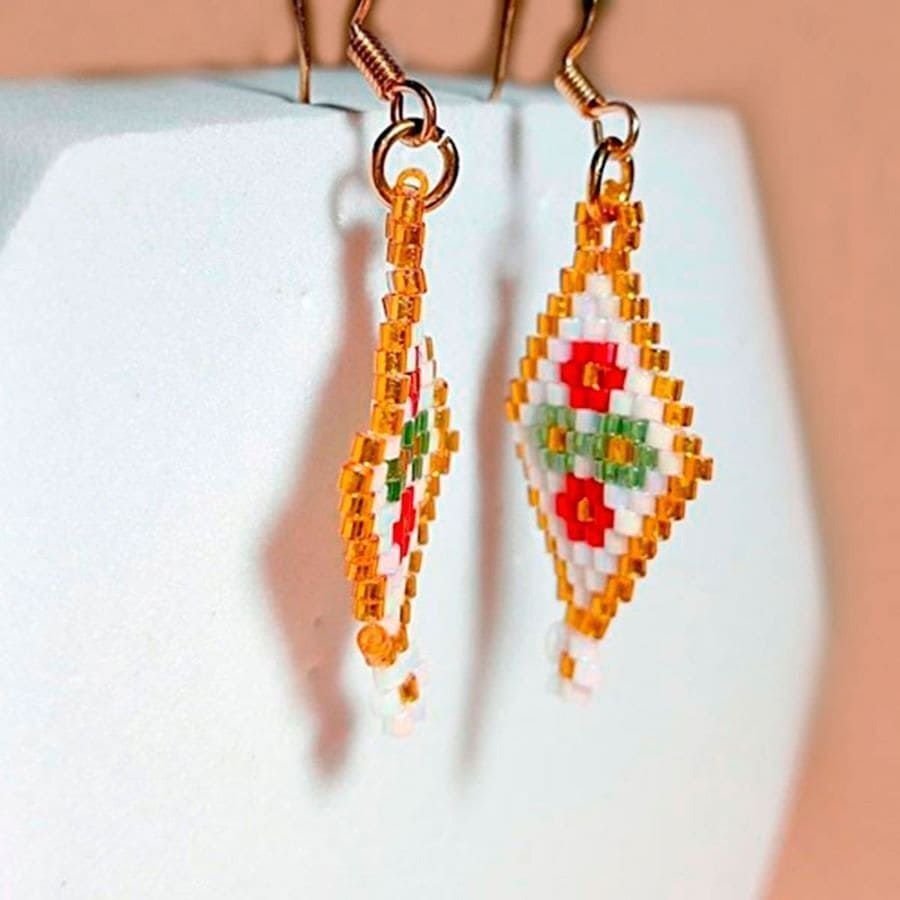 Los Pendientes de cuentas rombo son una pieza única creada completamente a mano mediante tejido de microcuentas Miyuki Delica. Cada par se construye lentamente, con intención y dedicación, siguiendo la filosofía de slow jewelry: joyas hechas con calma, alma y significado.