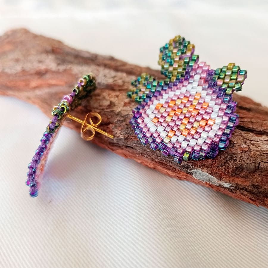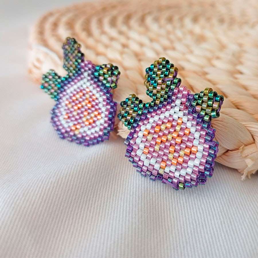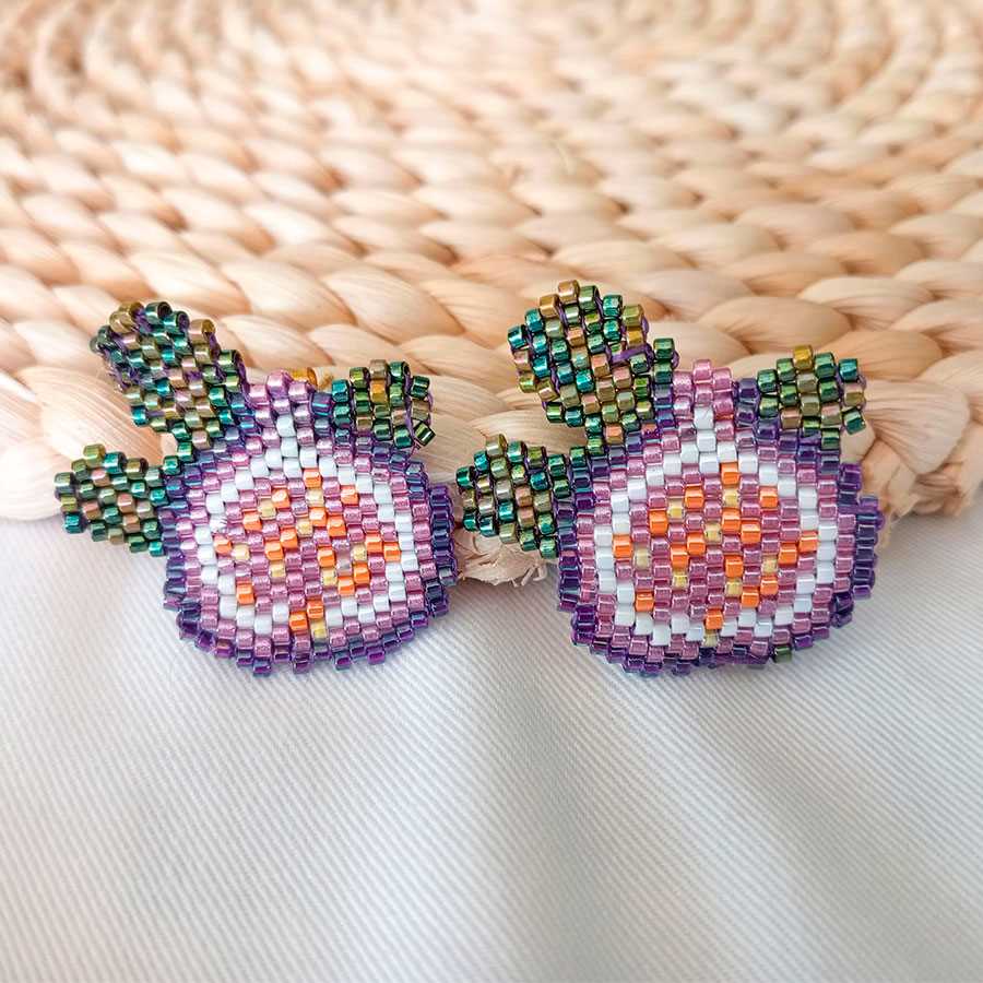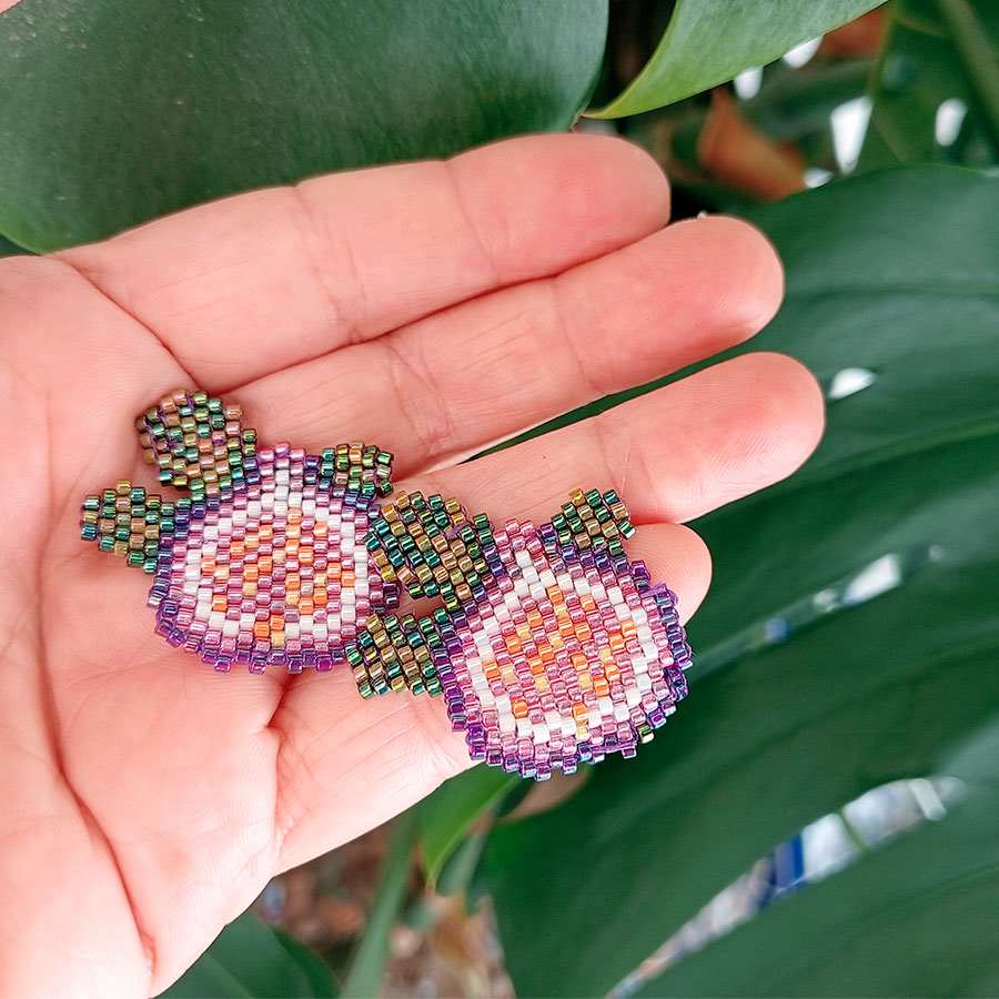 Los pendientes fruta higo son una pieza única de joyería artesanal diseñada para quienes aprecian el detalle, el color y la filosofía slow fashion. Cada par está elaborado completamente a mano con cuentas de cristal Miyuki de alta calidad, siguiendo una técnica de tejido minuciosa que da vida a la forma del higo con sus hojas en tonos verdes y morados. Estos pendientes son tipo stud, se colocan pegados a la oreja y no cuelgan, ofreciendo comodidad sin renunciar al estilo.