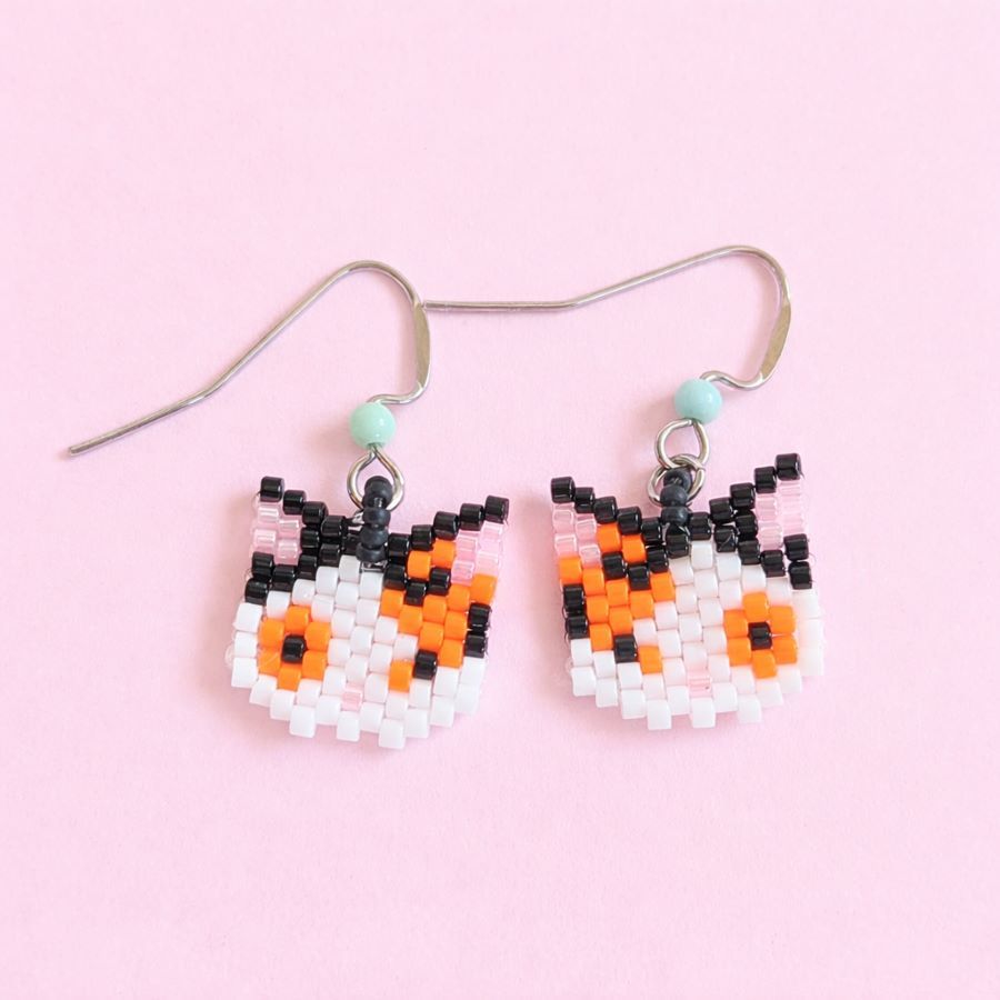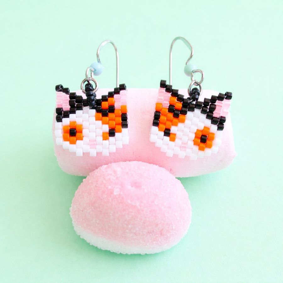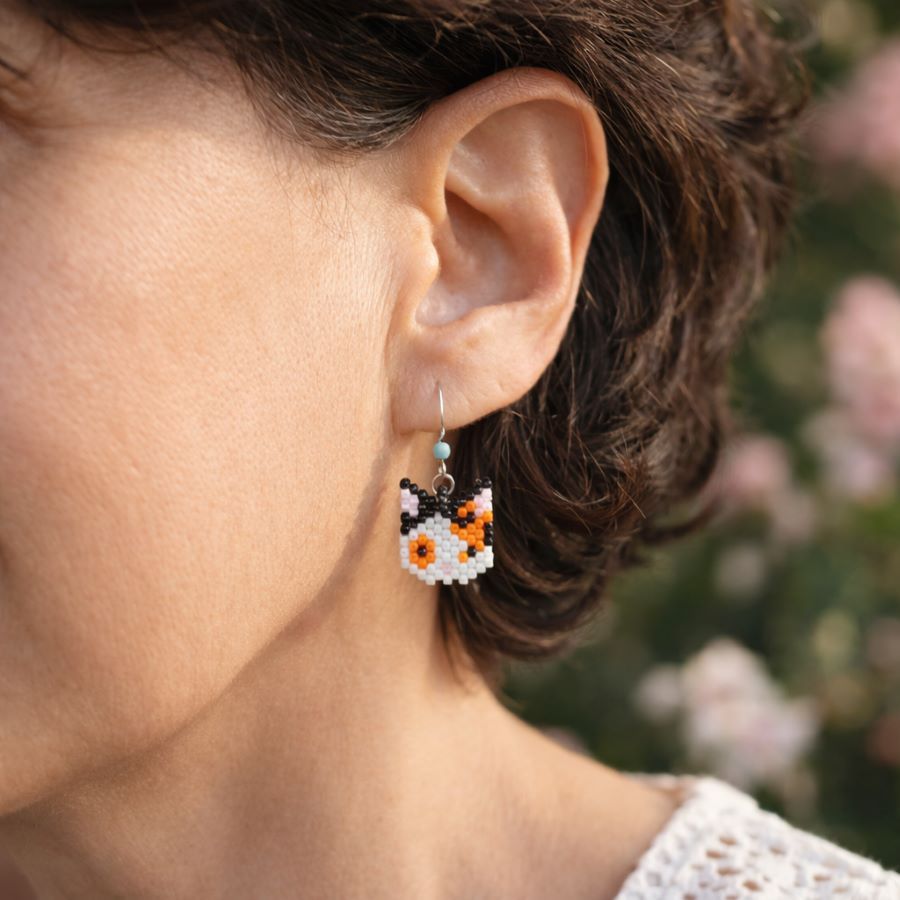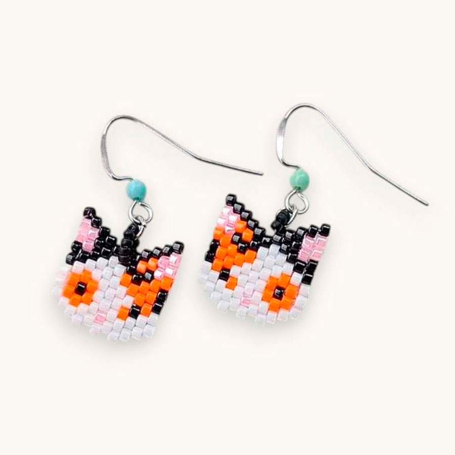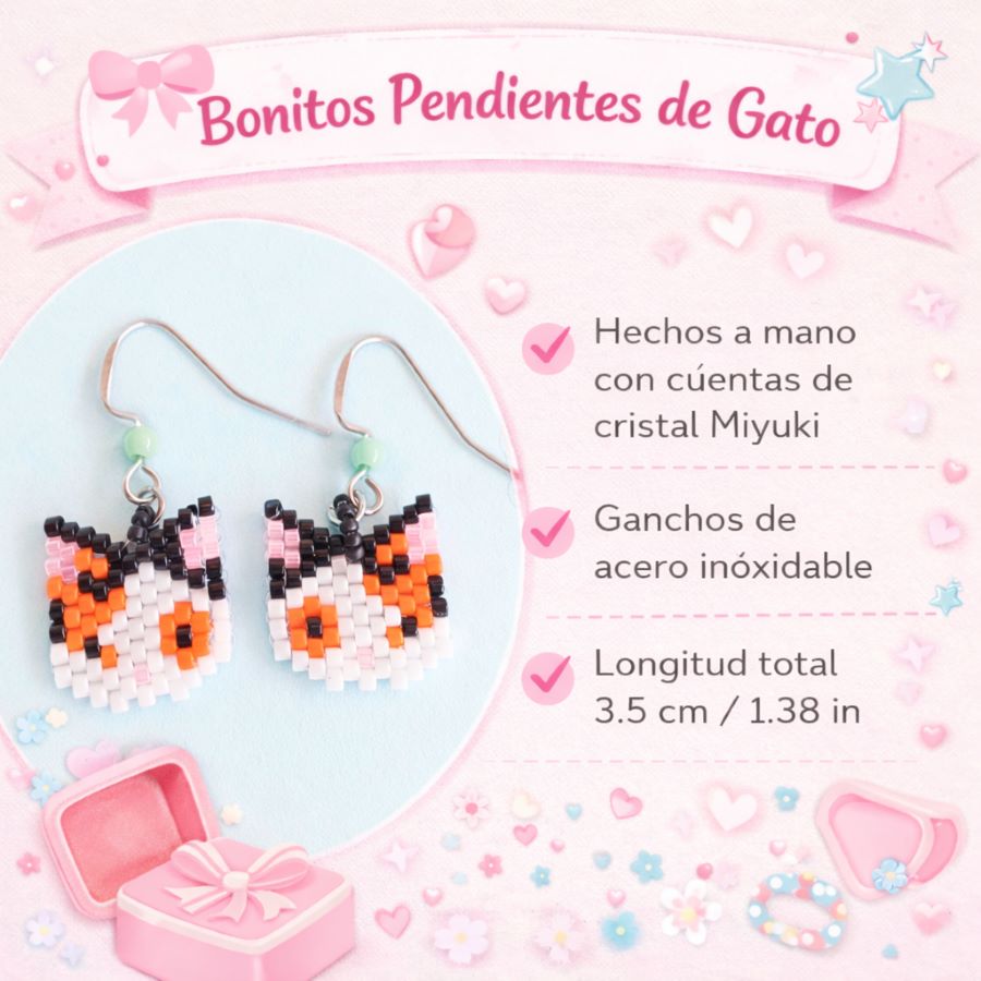 Pendientes Gatito Artesanales hechos a mano uno a uno, utilizando pequeñas cuentas de cristal cuidadosamente tejidas para dar forma a un diseño alegre, delicado y lleno de personalidad.