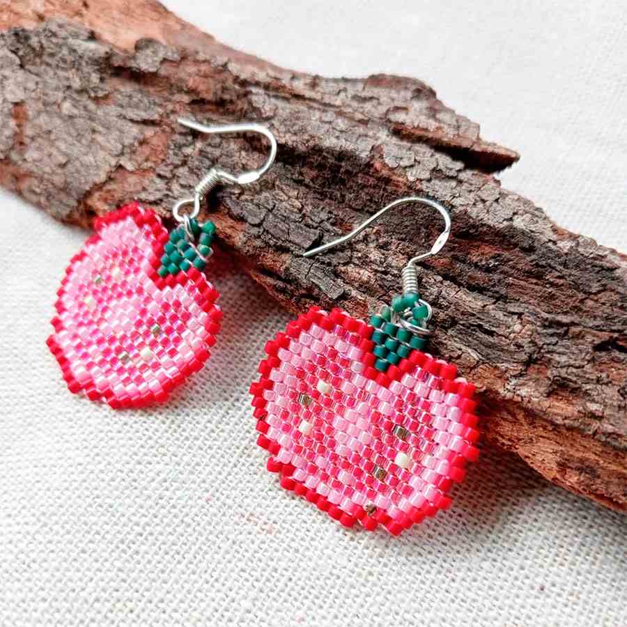 Pendientes Tomates de Cuentas Hechos a Mano de forma artesanal.
