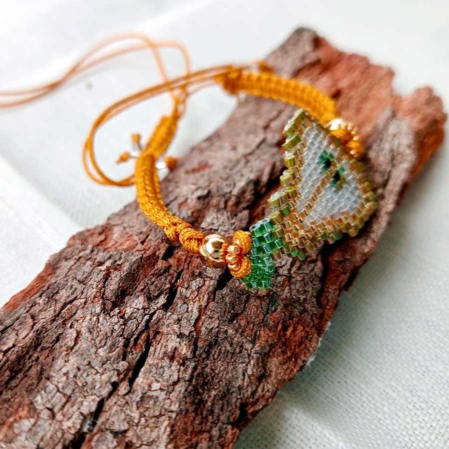 Pulsera ajustable pera hecha a mano con cuentas Miyuki y cordón macramé