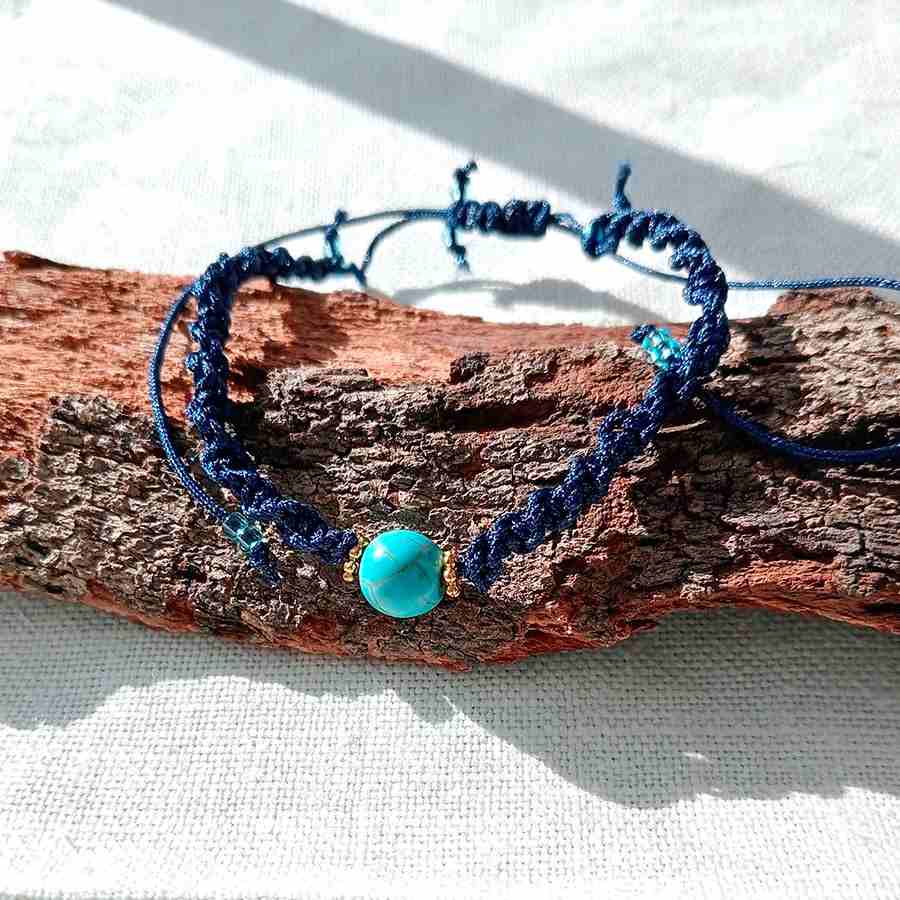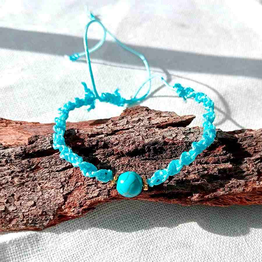 Luce tu pulsera turquesa macramé sola para un toque minimalista o combínala con otras pulseras artesanales para un estilo boho chic lleno de personalidad.